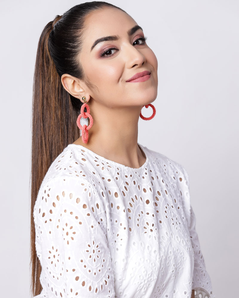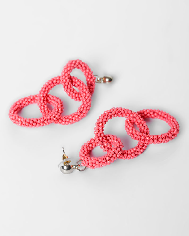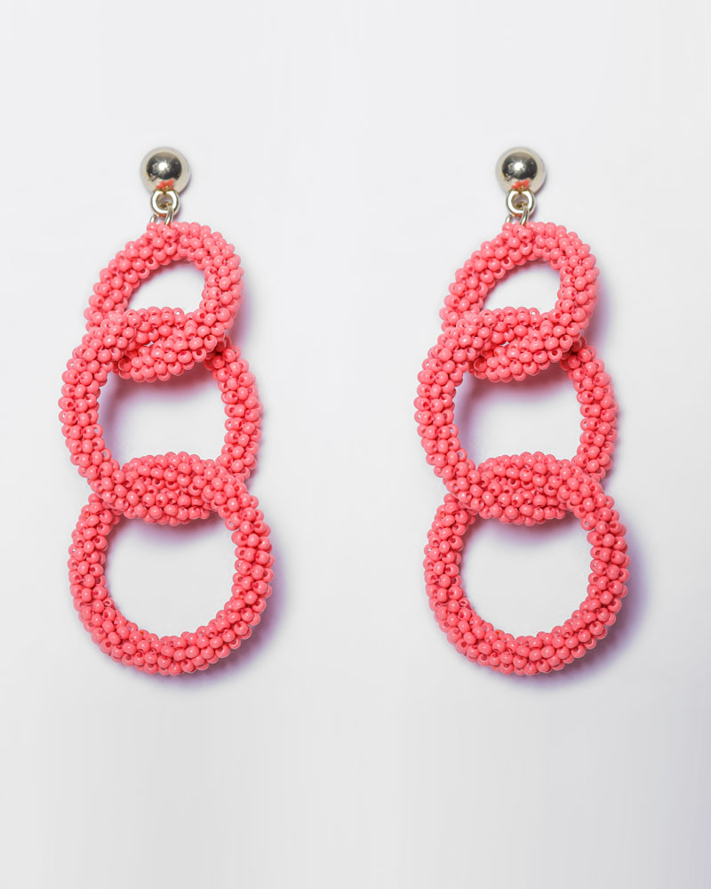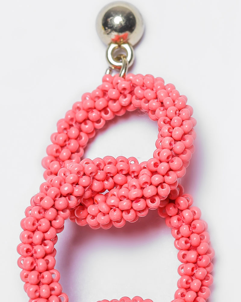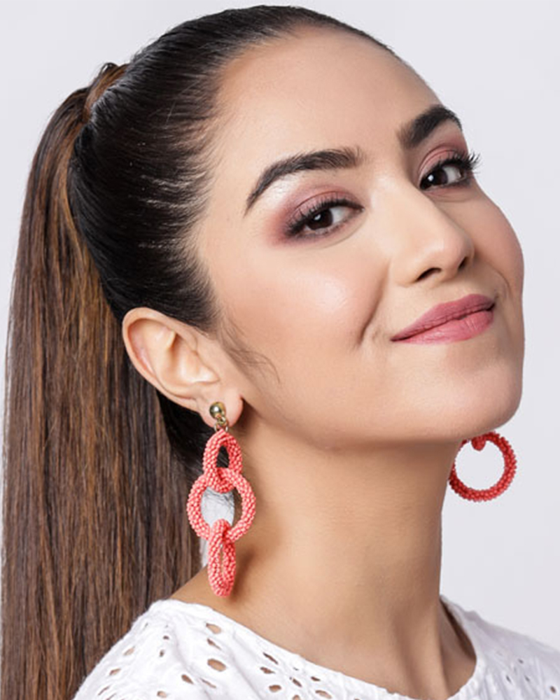 Handcrafted sustainable and skin-friendly coral pink beaded link earrings give a unique and graceful look to your dress.